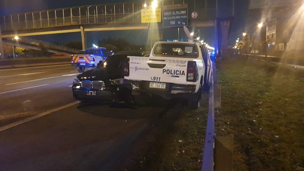 Al no poder hacerlo, los ladrones continuaron su fuga hacia Morón por la Autopista del Oeste y chocaron contra dos patrulleros de la Policía de la Provincia de Buenos Aires en medio de la frenética persecución.