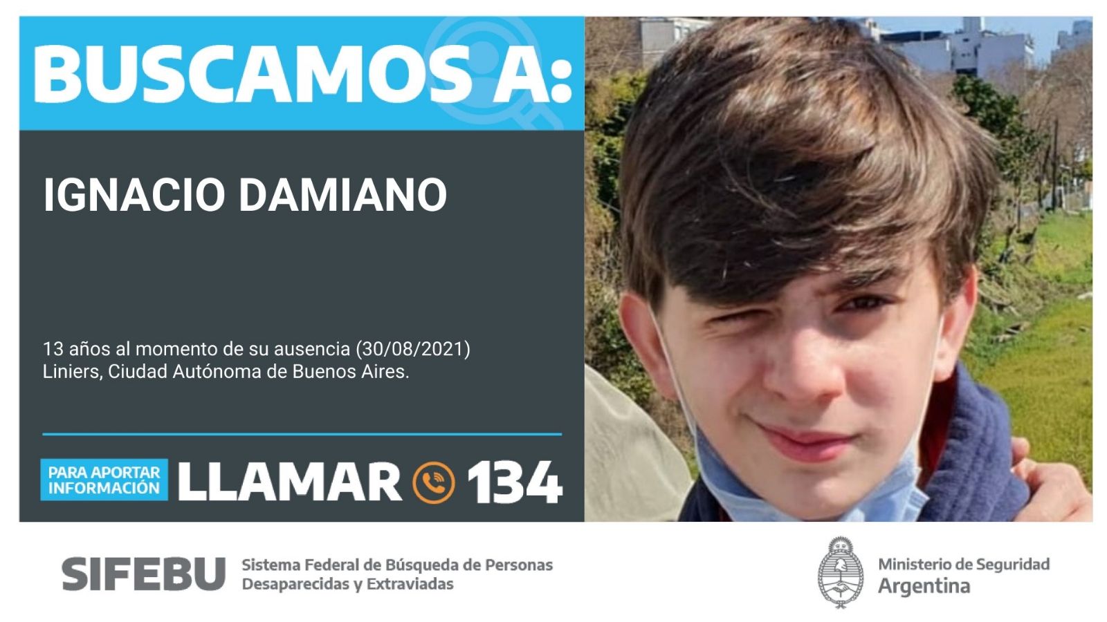 Se trata de Ignacio Damiano, de 13 años, quien fue visto por última vez en Alberdi y Larrazábal, donde también encontraron su mochila.