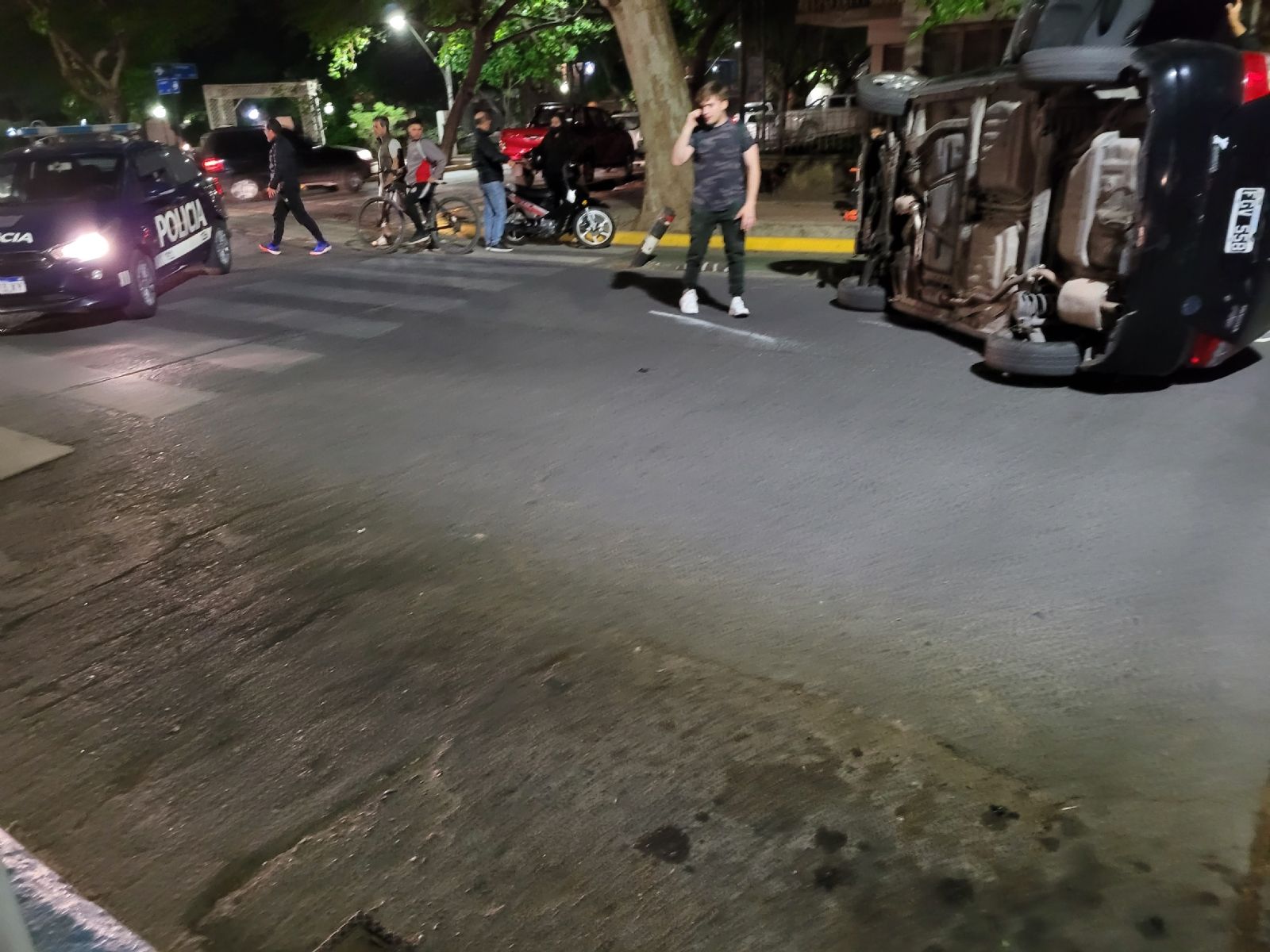 Este viernes por la noche, en Tiburcio Benegas y Leonidas Aguirre de Ciudad, una mujer chocó con su auto a un caño que divide la calle de la ciclovía y volcó.