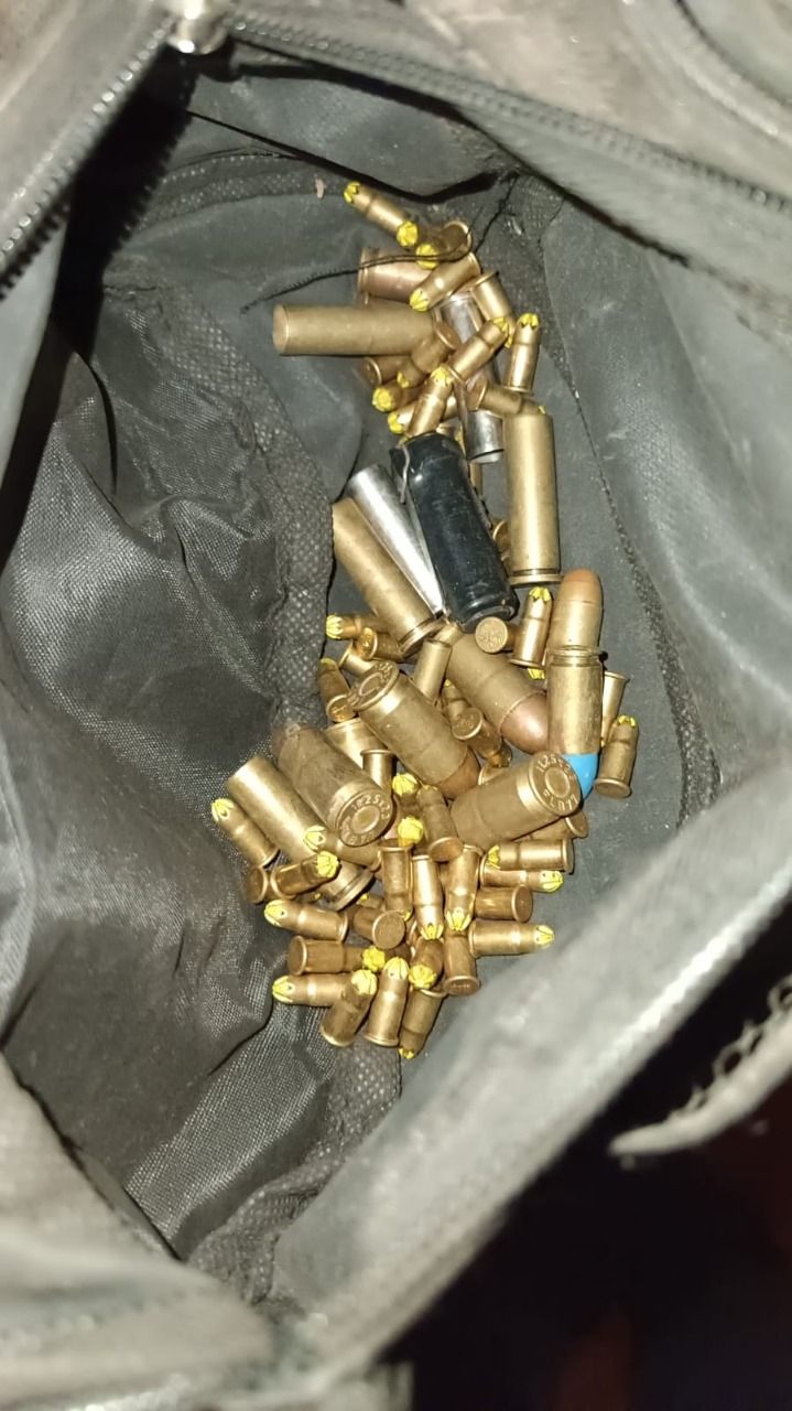 Seguidamente, los efectivos observaron que en el interior de la mencionada vivienda habían varios vehículos y autopartes, entre los cuales algunos de ellos presentaban, a saber por el dominio colocado, pedido de secuestro. La propietaria del inmueble permitió el acceso al personal policial y entre las autopartes secuestraron: una riñonera con 67 municiones calibre 22, 5 cartuchos calibre 11.25, 2 cartuchos calibre 380, 1 calibre 9mm.