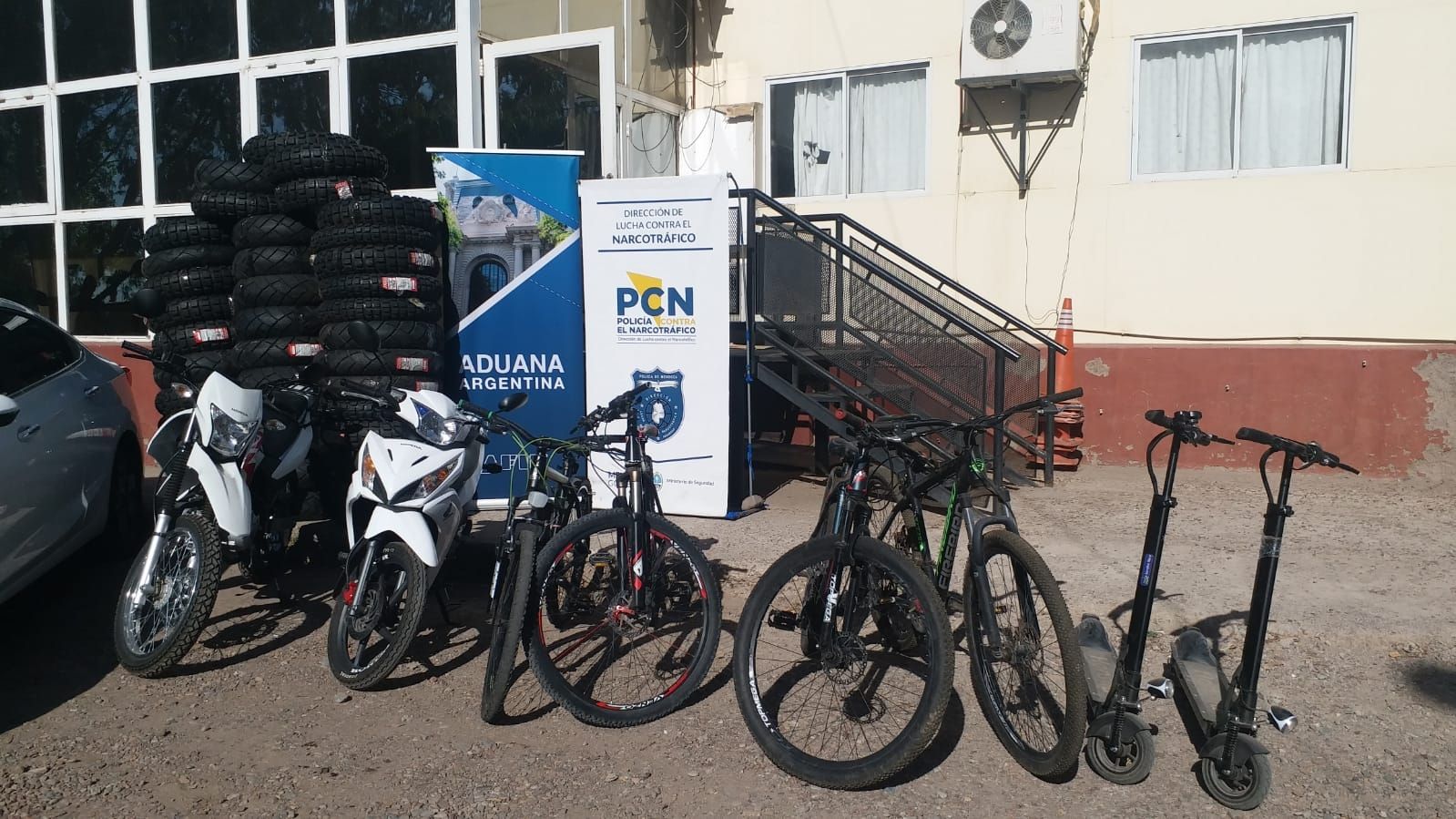 Asimismo, se secuestraron 7 ladrillos de clorhidrato de cocaína con la inscripción y cubiertas de moto de origen extranjero, las cuales habrían ingresado al país de forma ilegal. Estas últimas están siendo investigadas por AFIP-ADUANA, con la finalidad de corroborar la procedencia ya que cada una de ellas está valuada en unos 100 mil pesos argentinos.