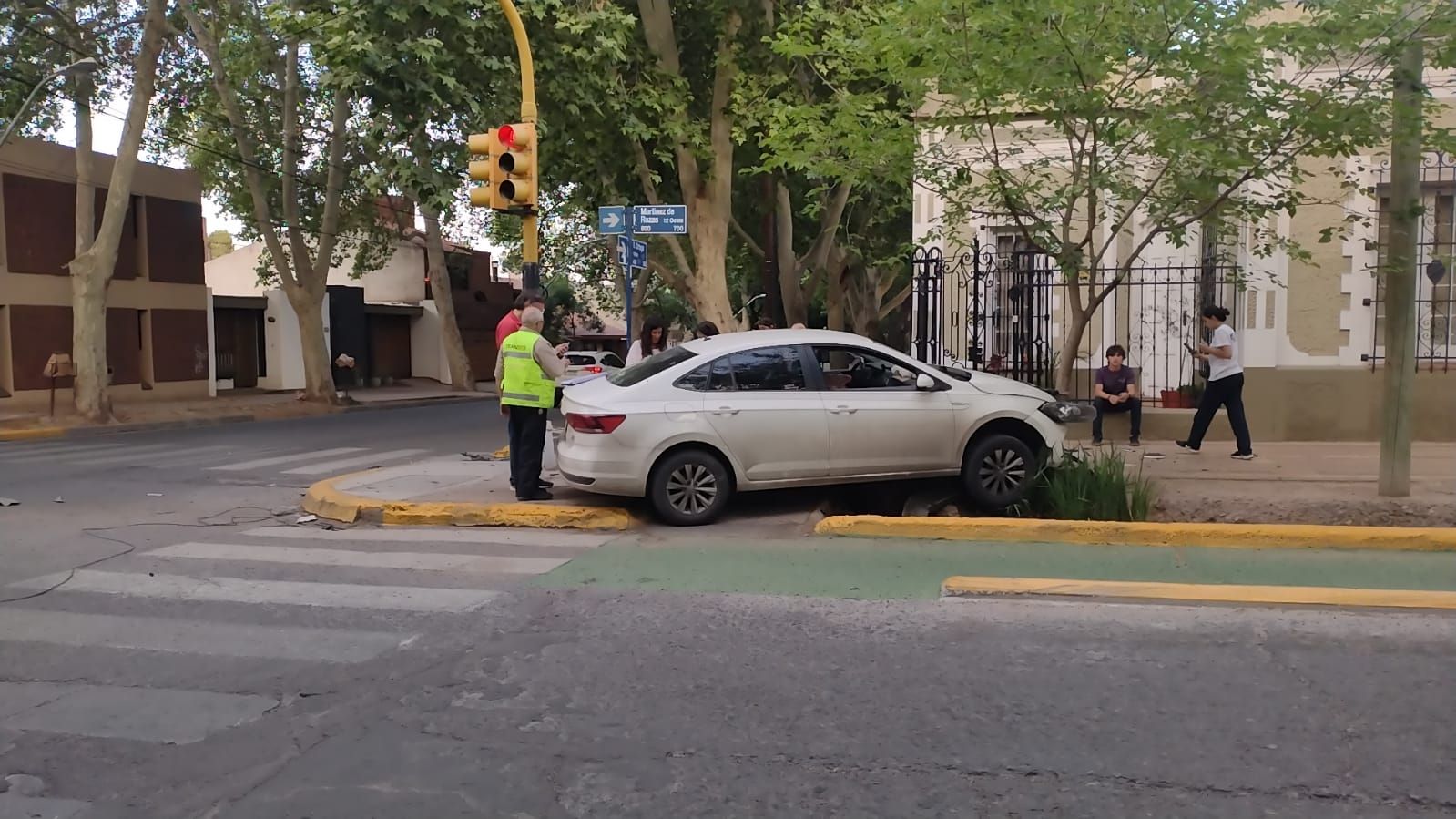 El vehículo que se llevó la peor parte fue el Volkswagen Virtus, que terminó cruzando la ciclovía de Martínez de Rozas y prácticamente quedó sobre la acequia, estrellado contra uno de los árboles.