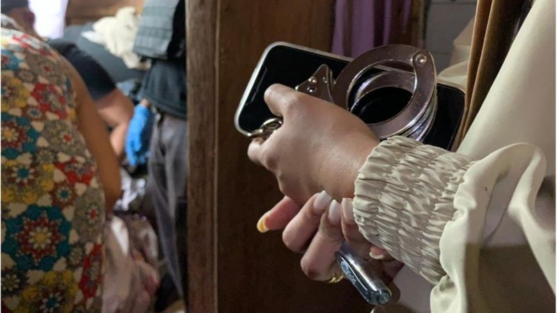 Mientras ella enciende la cámara, alrededor de una docena de agentes se precipitan a través de estrechos caminos hacia su puerta. La única advertencia es cuando los perros callejeros empiezan a ladrar.