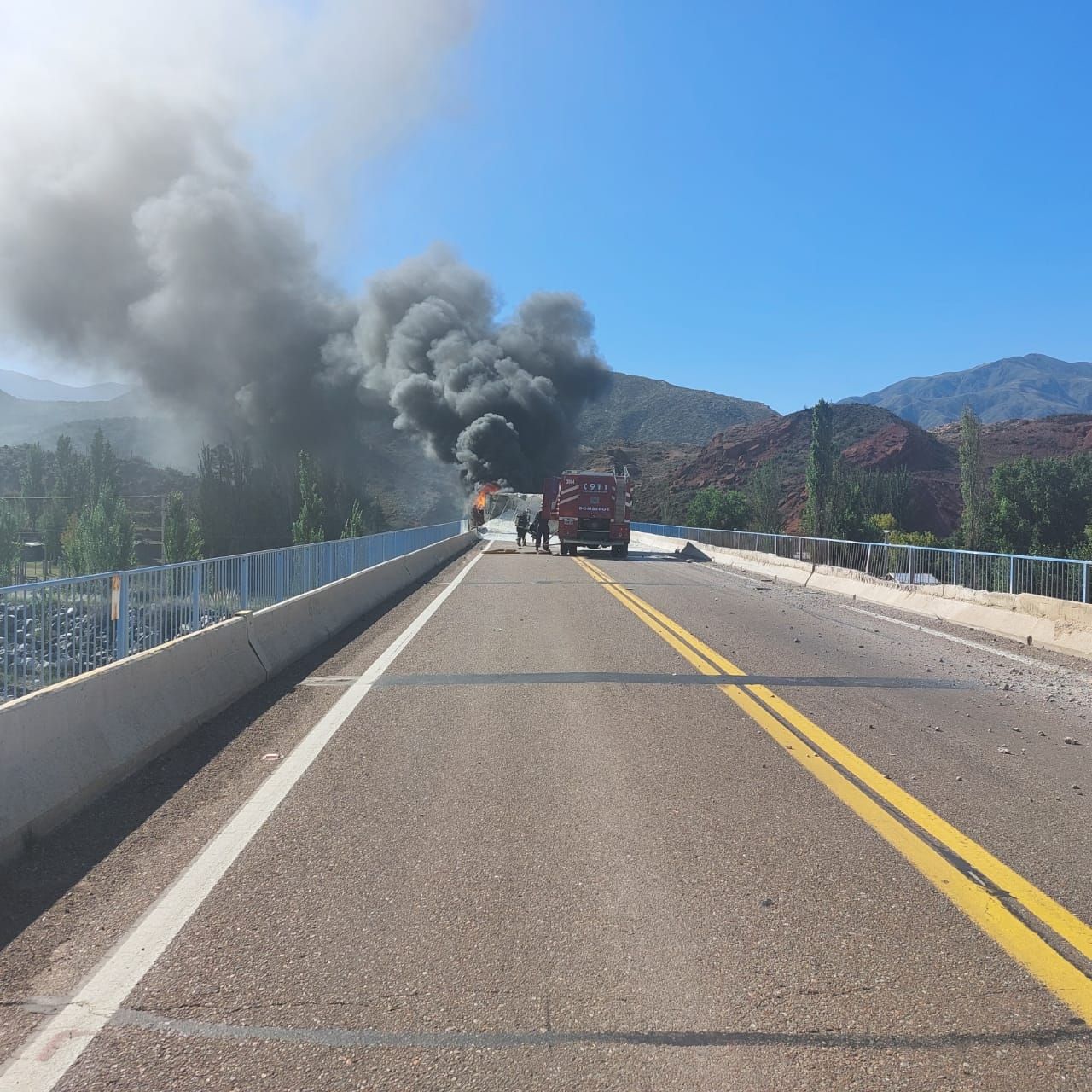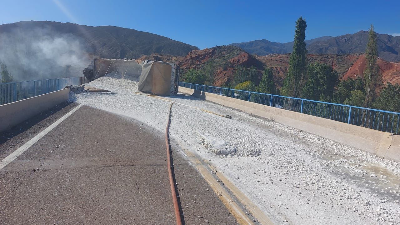 Impactante accidente en Potrerillos: un camión volcó y se prendió fuego