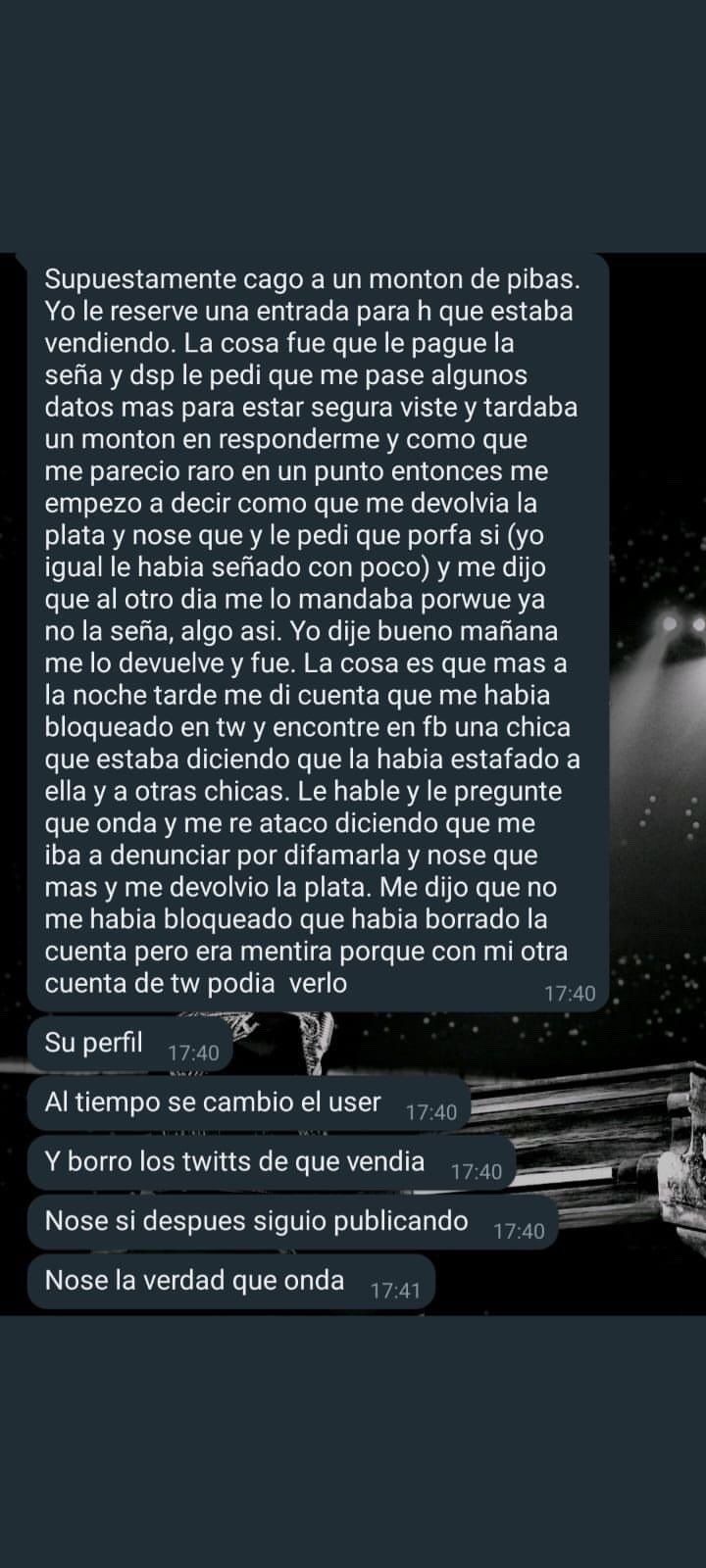 La presunta estafadora habría ofrecido entradas VIP para el recital a $21 mil, diciendo que las había adquirido y no podía ir. Luego, cuando los interesados depositaban el monto de las entradas, ella desaparecía o bloqueaba a los compradores.