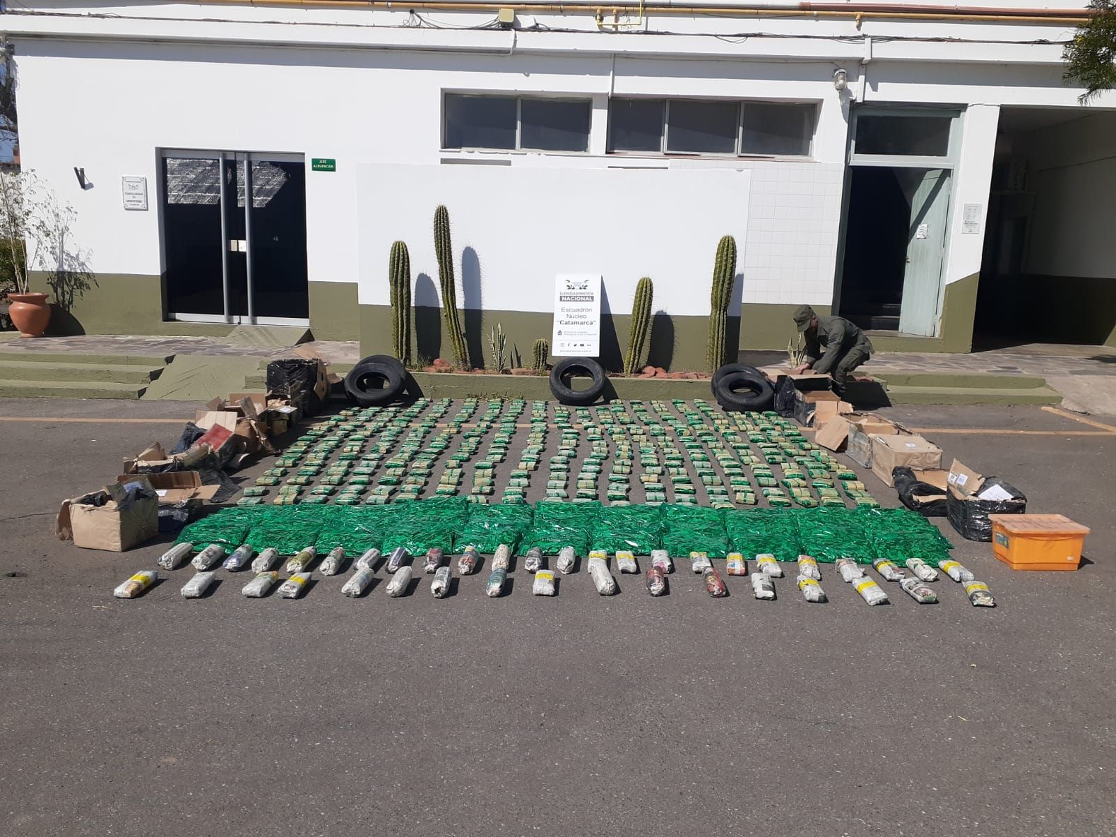 Por otra parte, este lunes integrantes del Escuadrón Núcleo “Catamarca” secuestraron 116 kilos de hojas de coca y 5 cubiertas de origen extranjero sin aval legal. El avalúo de lo incautado supera los 2.000.000 de pesos.