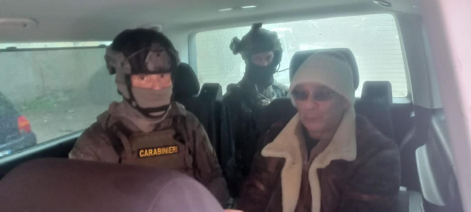 Messina Denaro aparece escoltado por los carabineros que le introducen en una furgoneta negra hacia un destino que no se ha dado a conocer, pero seguramente a una cárcel de máxima seguridad fuera de Sicilia.