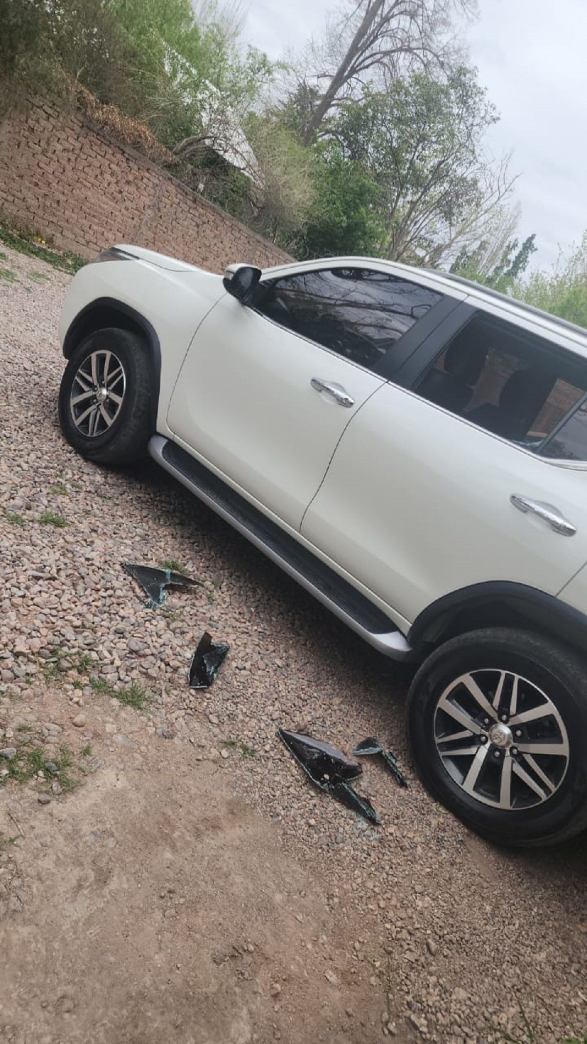 Según el relato de la victima, un auto marca Peugeot Sport de color Blanco se estacionó al lado de su camioneta marca Toyota Hilux blanca, descendieron los delincuentes y con el codo uno de los sujetos reventó el vidrio trasero izquierdo del rodado.