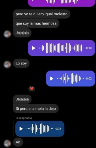 Uno de los chats que trascendió es entre ella y un estudiante, donde le expresa estar celosa porque él volvió con su exnovia y hasta le pidió en reiteradas oportunidades que la deje.