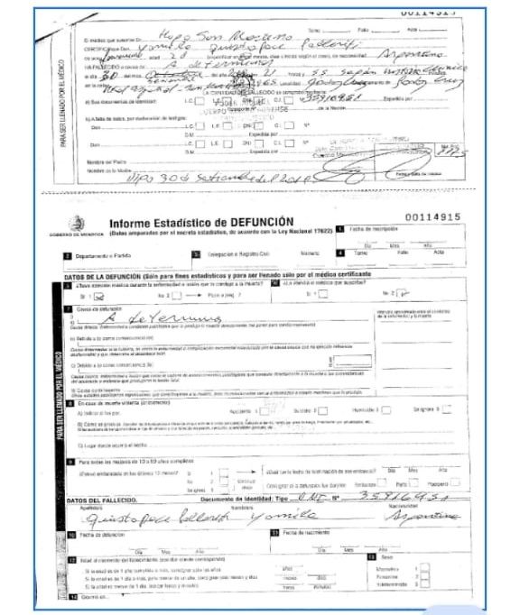 A las 21.55, Yamila falleció y la causa de muerte fue "shock hipovolémico por lesión de aorta abdominal por procedimiento quirúrgico laparoscópico".