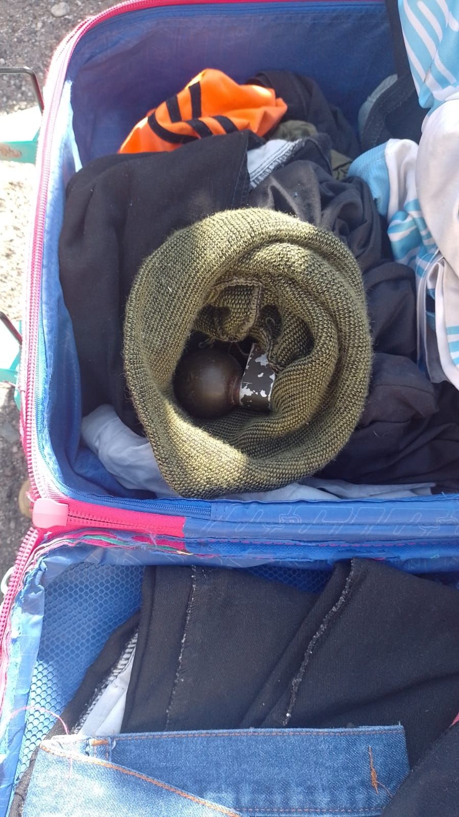 Por último, en una valija hallaron prendas de vestir y una granada, al parecer en perfecto para ser usada. Ante esto debieron convocar al personal policial de Explosivos, que secuestró este elemento.
