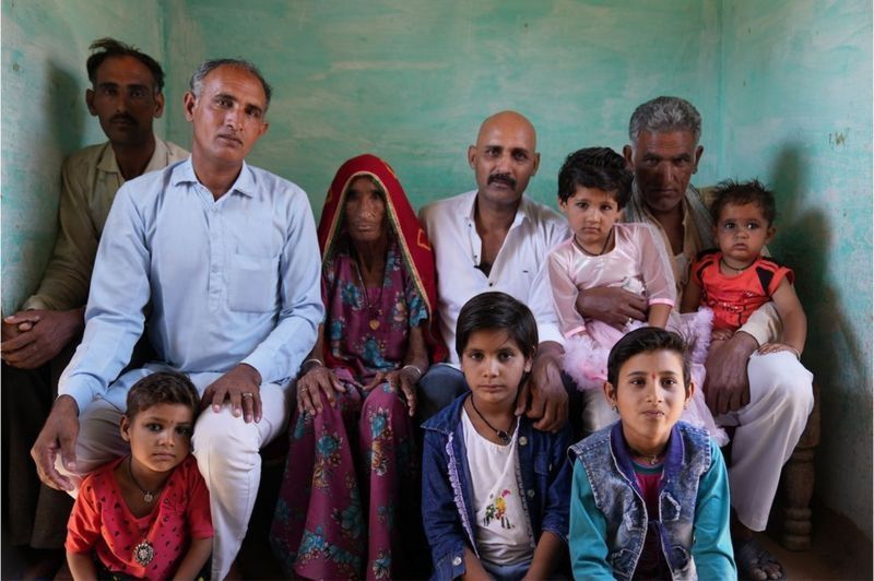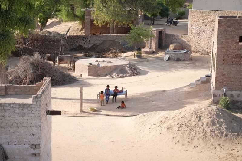 La BBC atravesó un paisaje caluroso y reseco de llanuras de arena, matorrales y árboles marchitos para llegar a Jalabsar, un pueblo de 600 casas y 3.000 habitantes en Rajastán. Allí, Chaudhary, hijo de un agricultor y de una ama de casa, ha vuelto a vivir con su extensa familia de cuatro hermanos, sus esposas y una docena de sobrinos.