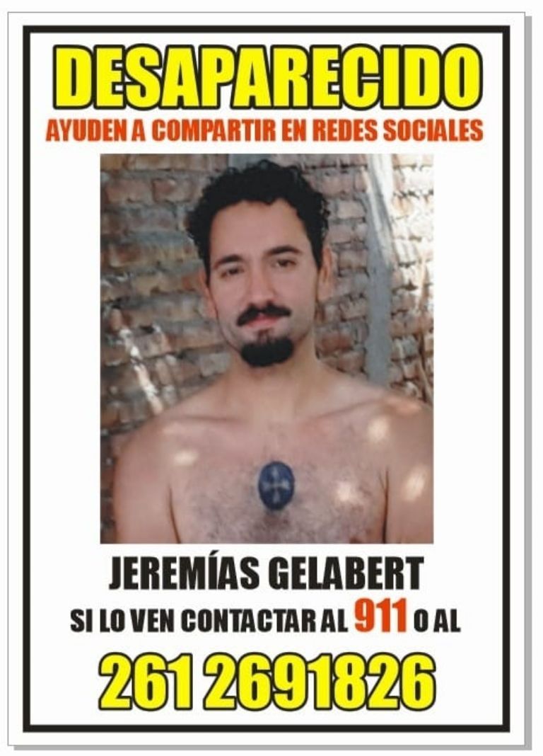 Jeremías Gelabert tenía 30 años cuando desapareció de las faz de la Tierra. Fue el domingo 22 de noviembre del 2020 y durante un asado que compartía con su familia que algo le molestó y se fue para no volver a ser visto. Por entonces había sido diagnosticado con bipolaridad, estaba separado de su pareja y veía poco a su hijo. Dejó algunas notas en el lugar donde vivía y nada más se supo de él.