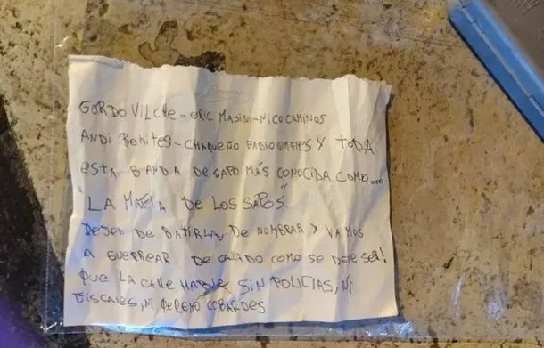La Policía Científica recogió diez vainas servidas en la escena del tiroteo y una nota con el texto “con la mafia no se jode”, similar a las dejadas en idénticos ataques.
