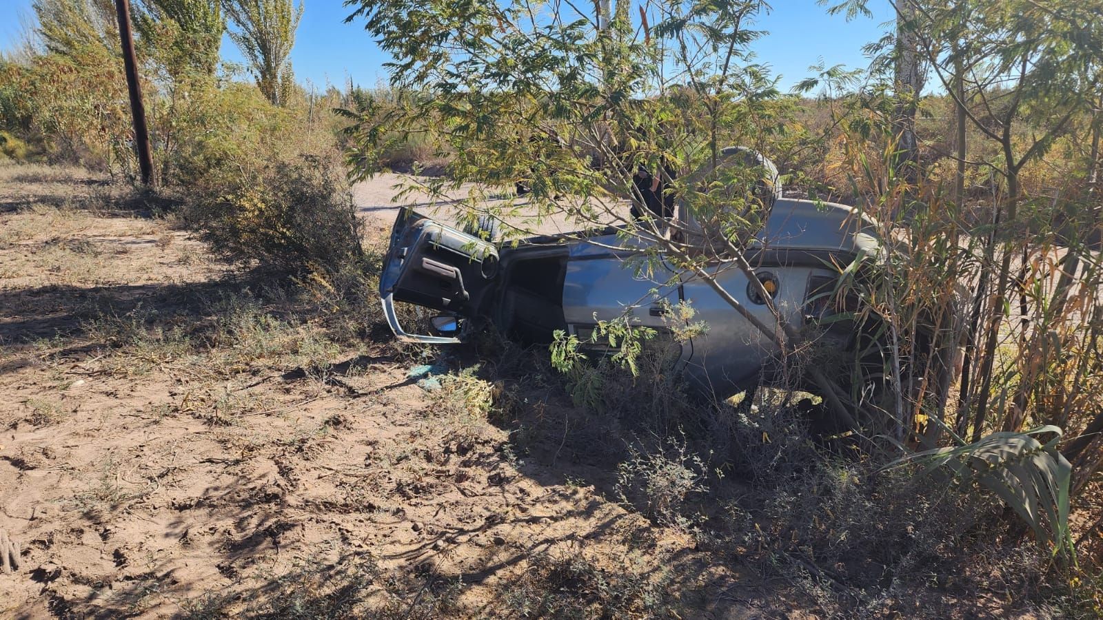 Ante esto el rodado comenzó a dar tumbos y se produjo el vuelco, quedando en la banquina y con las cuatro ruedas hacia arriba. Testigos observaron lo sucedido y trasladaron en un auto particular a las víctimas hacia el hospital de Costa de Araujo, en Lavalle.