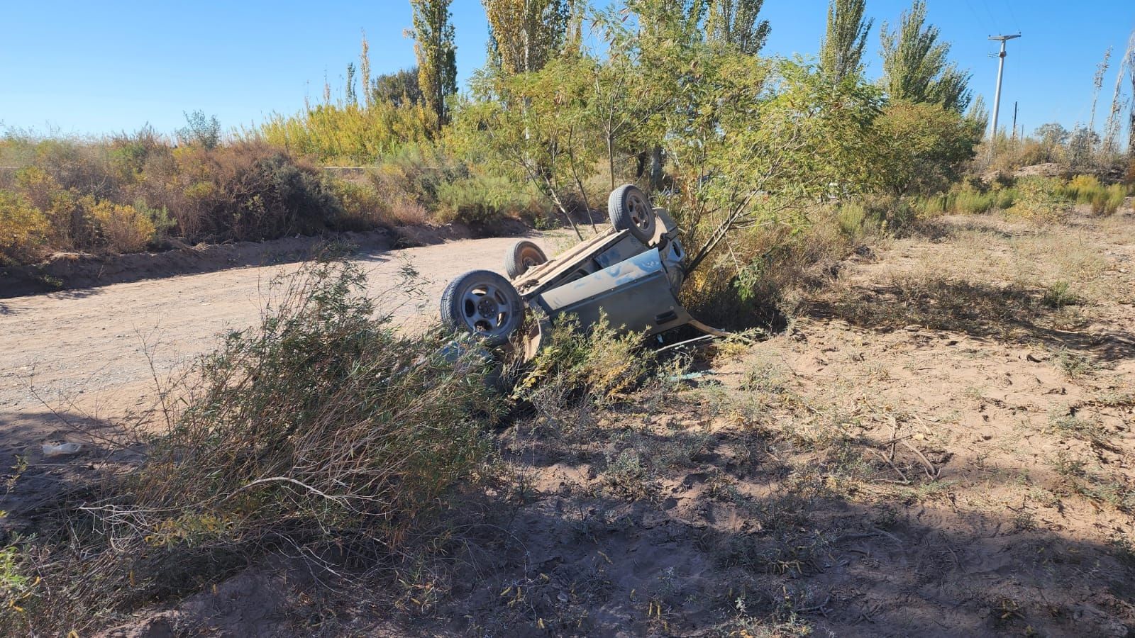 Ocurrió pasadas las 13 en calle Bellota, inmediaciones del Carril Chimbas, en Nueva California. Por allí circulaba hacia el este Noelia Castañeda Aguero en un Renault 19, hasta que por motivos que se desconocen, perdió el dominio del coche.