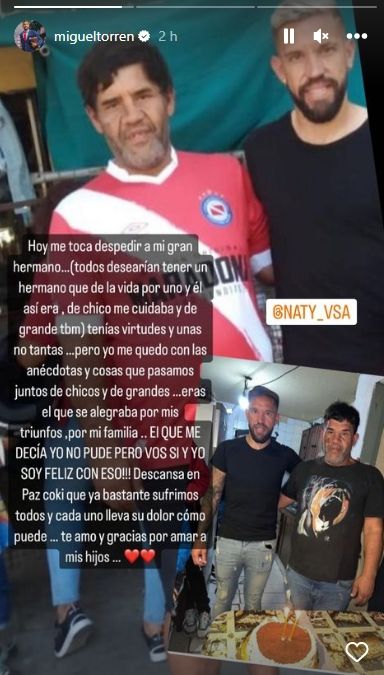 El futbolista de Argentinos Juniors, Miguel Torrén, despidió a través de las redes sociales con un emotivo mensaje a su hermano José Sixto, quien fue asesinado a balazos en su vivienda de Rosario.