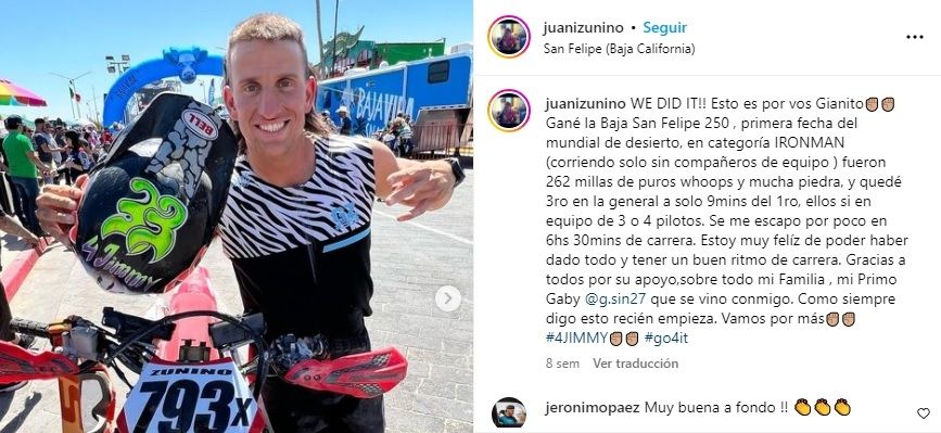 Justamente, tras quedarse con la competencia, Juan le dedicó el triunfo a su hermano Gianfranco, quien también perdió la vida luego de sufrir un grave accidente mientras competía en la localidad rionegrina de Catriel en abril del 2019, cuando tenía 17 años.