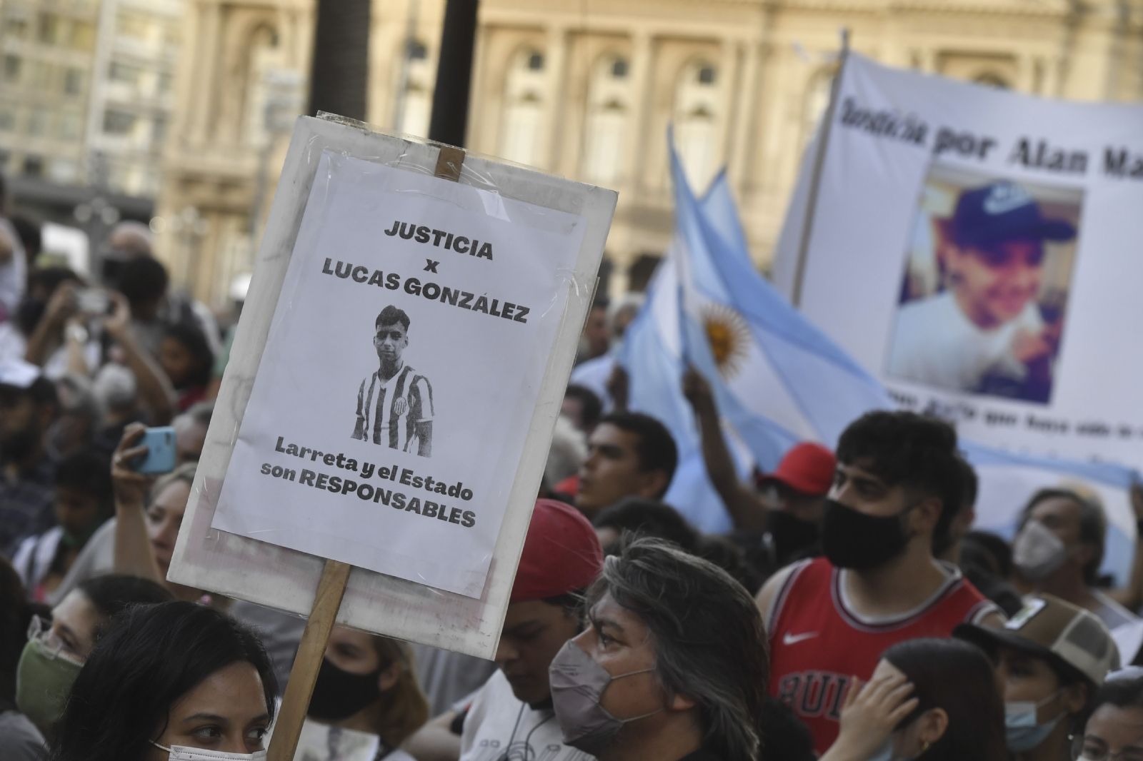 Más tarde, Natalia Arévalo, la codefensora y hermana del detenido por encubrimiento Ángel Darío Arévalo, también apuntó a la cabeza de la fuerza porteña: "La madre de Lucas merece saber la verdad, quienes son los verdaderos encubridores de esto, (los culpables) no son los de menor jerarquía, sino que viene de más arriba".
