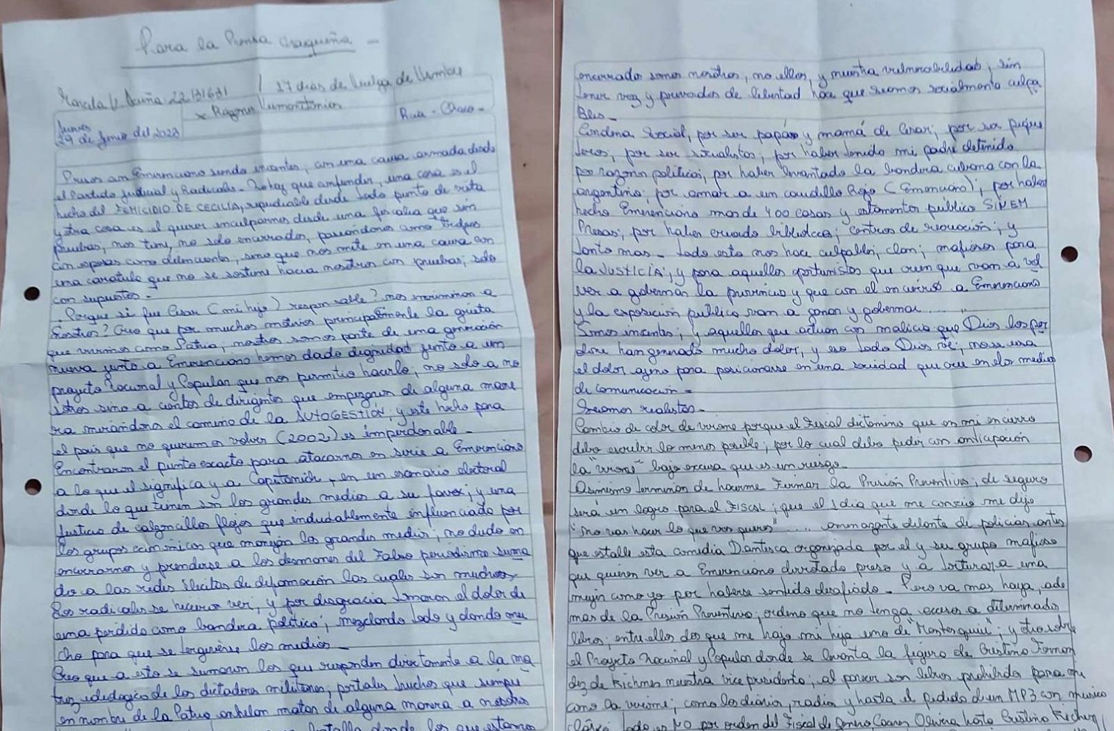 Al ser consultado sobre la trascendencia de la carta que la hermana de Emerenciano Sena le envío, Arreguin confirmó: "Vamos a pedir que se investigue porque dijo lo de arreglar jueces ".