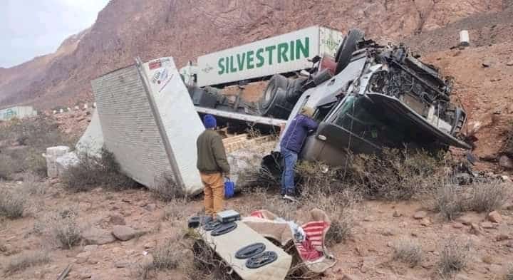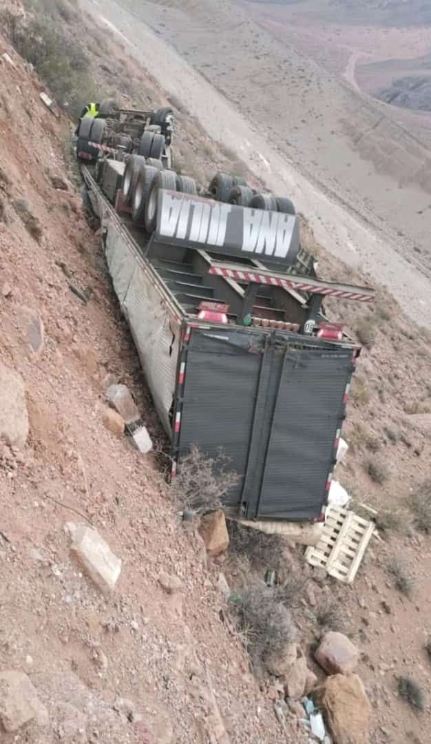 Brutal accidente: volcó un camión en la Ruta 7, cerca del Paso a Chile