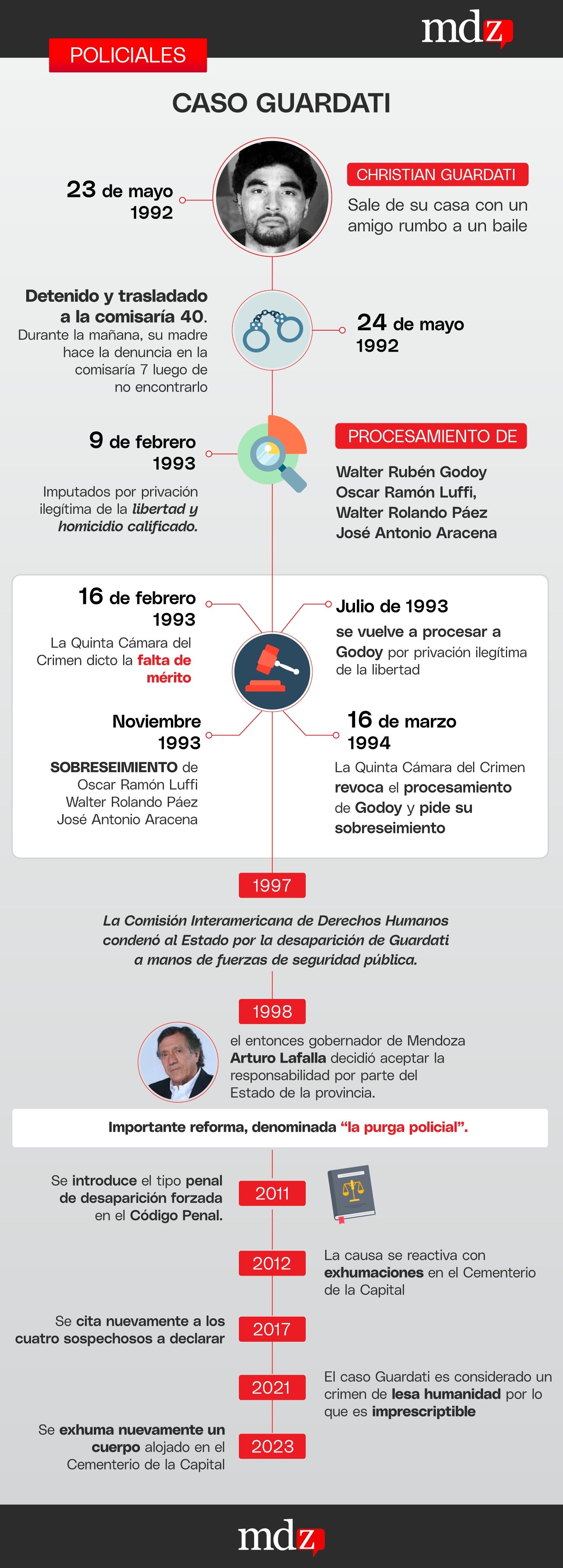 El cargo de homicidio fue alentado debido a una notificación que se realizó desde el hospital Lagomaggiore que indicaba que el 26 de mayo ingresó a ese centro asistencial un cadáver identificado como N.N. A partir de los dichos de dos camilleros y el chofer de la morguera policial, la descripción del cuerpo y la ropa que usaba coincidía con Guardati. Este cuerpo luego fue hallado en el crematorio del Cementerio de la Capital.
