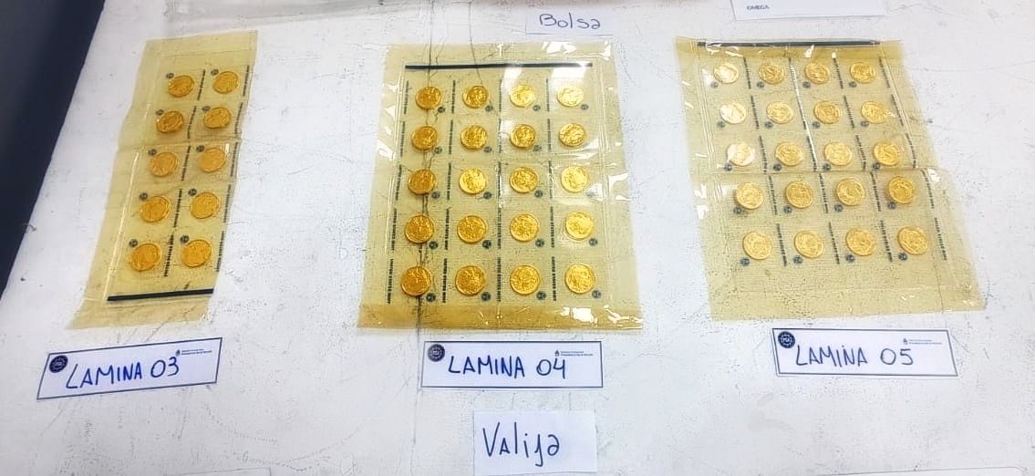 Según las fuentes de la PSA, en el marco de los controles preventivos, los oficiales detectaron mediante la máquina de rayos X "varios elementos de material inorgánico en dos valijas de cabina", por lo cual consultaron a la dueña, quien admitió que se trataba de monedas de oro.