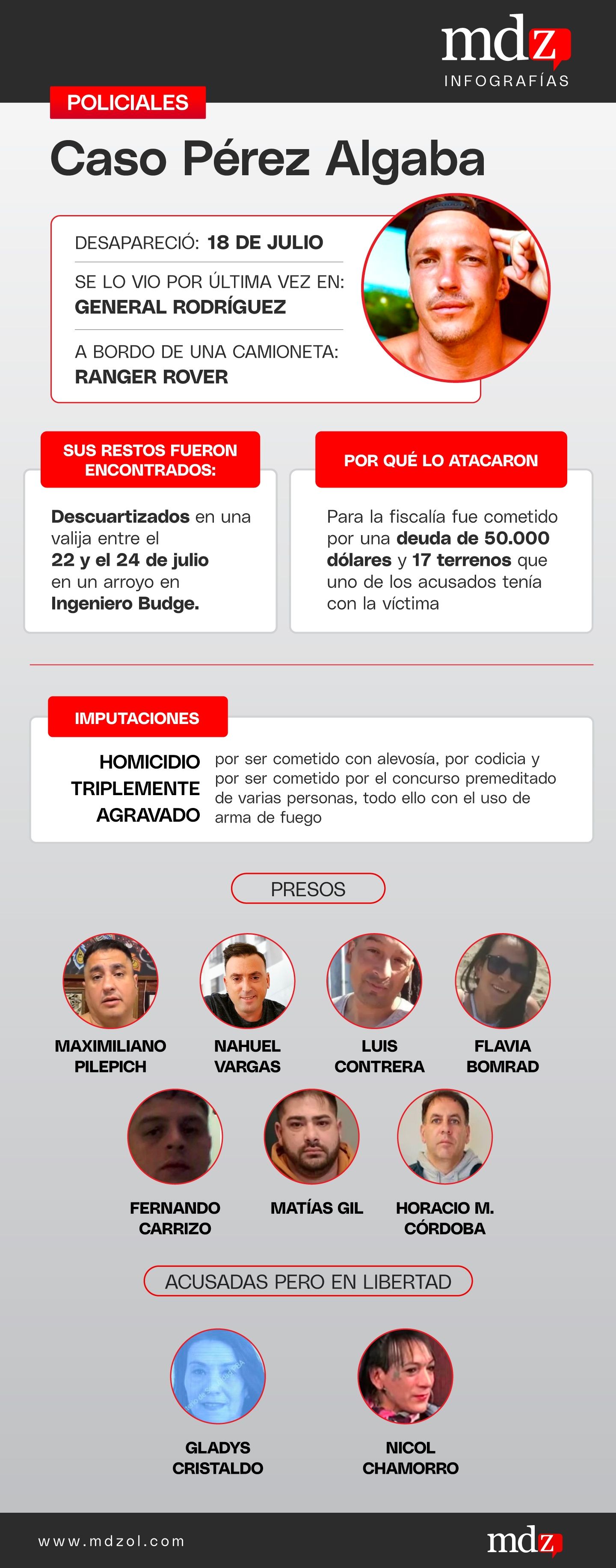 Pérez Algaba fue visto por última vez en la tarde del 18 de julio cuando a bordo de una camioneta Ranger Rover blanca que le había prestado Pilepich se dirigió junto a Vargas al predio "Renacer" de Rodríguez a cobrar la deuda.