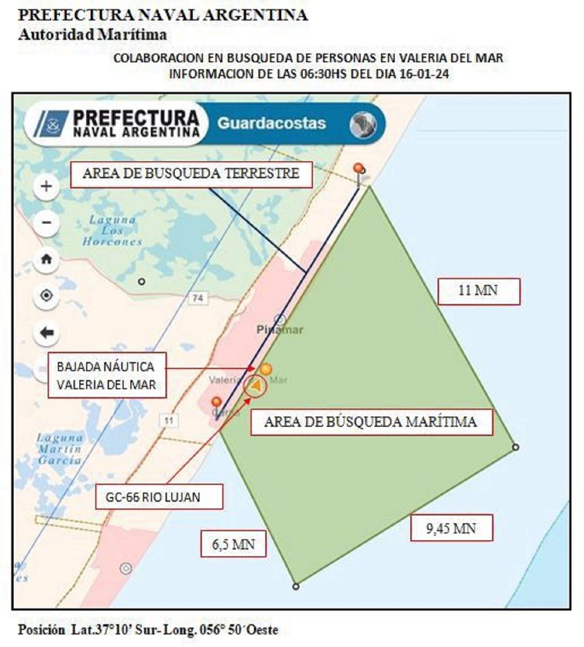 La Secretaría de Seguridad del municipio de Pinamar notificó a todos los guardavidas del partido para sumarse a la búsqueda.