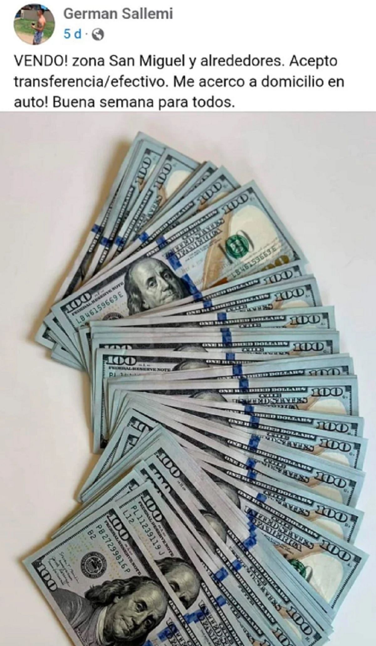 De inmediato los policías iniciaron las actuaciones y de acuerdo a las primeras averiguaciones realizadas determinaron que el joven se dedicaba a la venta de dólares, los que ofrecía por internet.