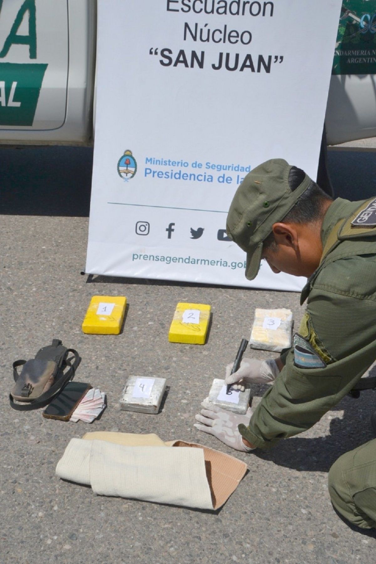 En el caso intervino la Fiscalía Federal, que dispuso que se requise a los sujetos que habían bajado del automóvil en el control. Allí, los uniformados comprobaron que uno de ellos tenía adherido al cuerpo un total de cinco “panes” con un peso de 4 kilos 209 gramos de cocaína.