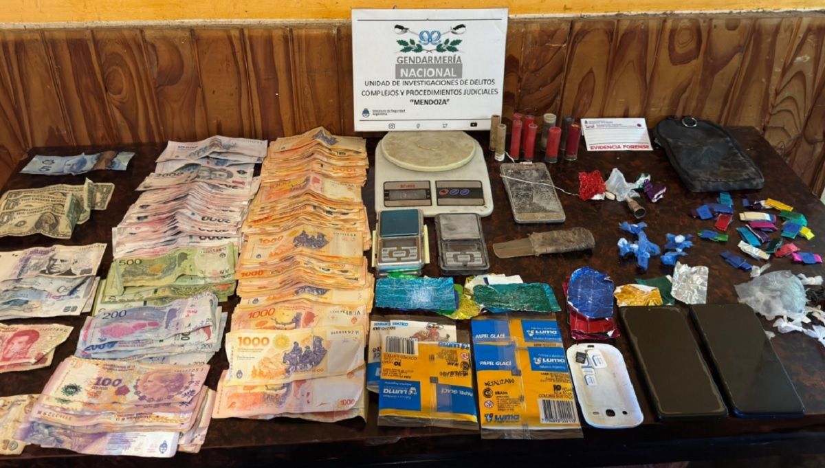 Allí se incautaron 29 envoltorios con 13,8 gramos de cocaína y sus derivados, 0,3 gramos de marihuana, tres balanzas de precisión, 11 municiones, dispositivos móviles y de almacenamiento de información, chips de diferentes empresas, 298.290 pesos argentinos, dólares y pesos canadienses, nylon y papeles para fraccionar las sustancias.