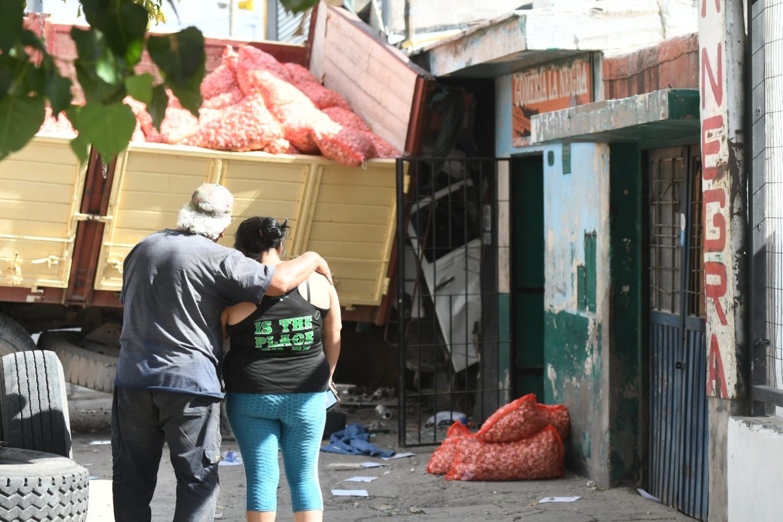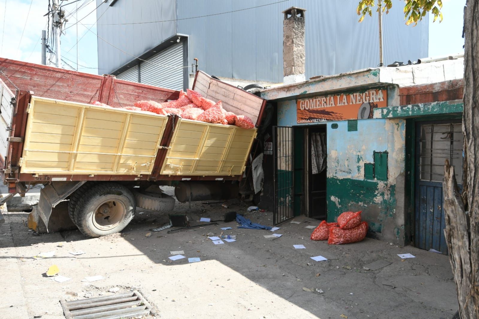 Un camionero se quedó sin frenos, impactó a dos autos y se incrustó en un negocio en Godoy Cruz: tres heridos