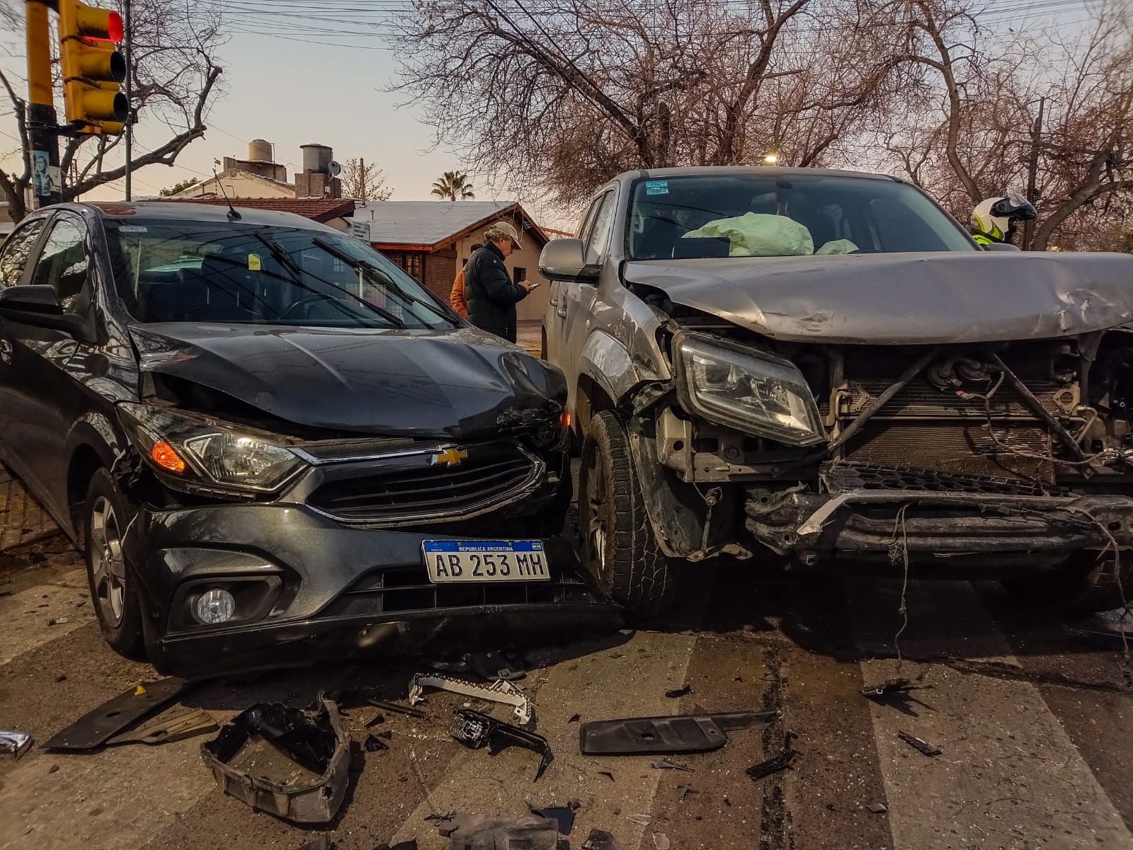 De acuerdo con el testimonio de los testigos, uno de los vehículos habría cruzado el semáforo en rojo, por lo que se produjo el impacto. El auto, que fue chocado en el lateral izquierdo, del lado de la conductora, terminó incrustado en un poste en la parte trasera. Por su parte, la camioneta que lo embistió presenta daños en el frente.