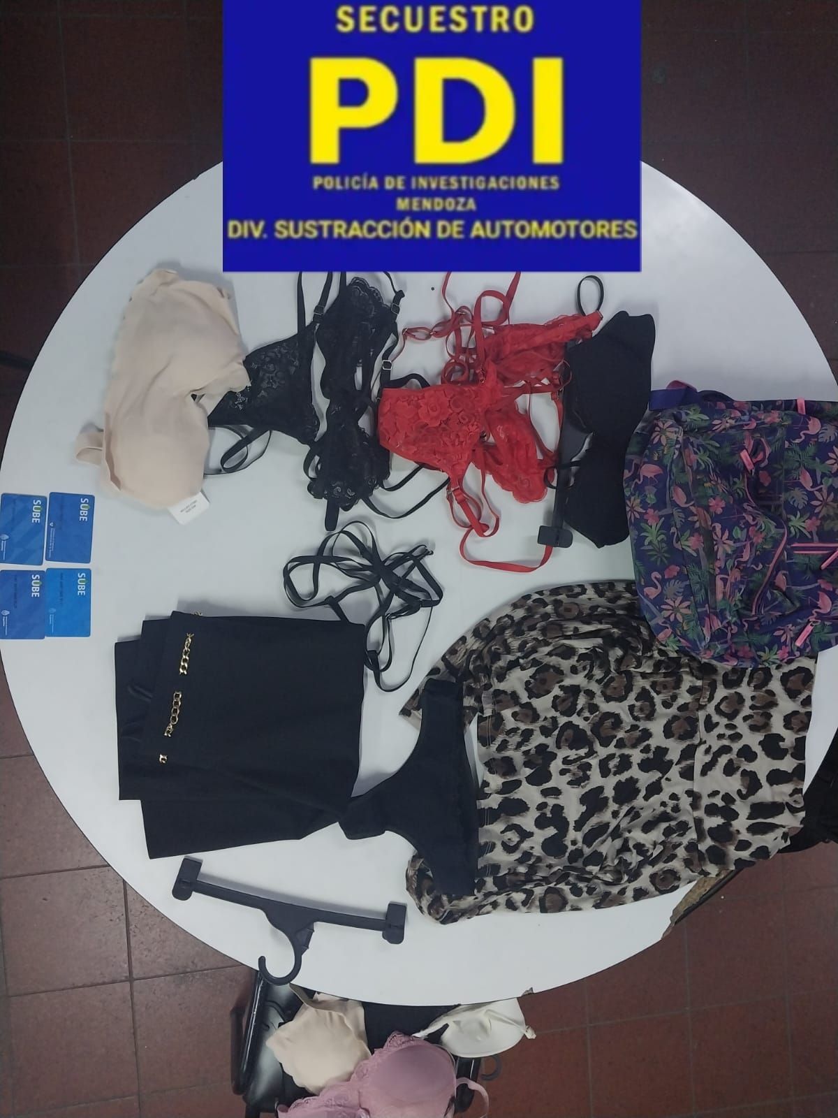 La sospechosa fue arrestada en una vivienda de calle Las Moras y El Nevado, en el barrio San Martín de Capital. Luego de ser identificada, la Justicia ordenó un allanamiento en su domicilio, en donde la Policía secuestró: 15 conjuntos de lencería, tres prendas de vestir y una mochila utilizada en el momento del hecho.