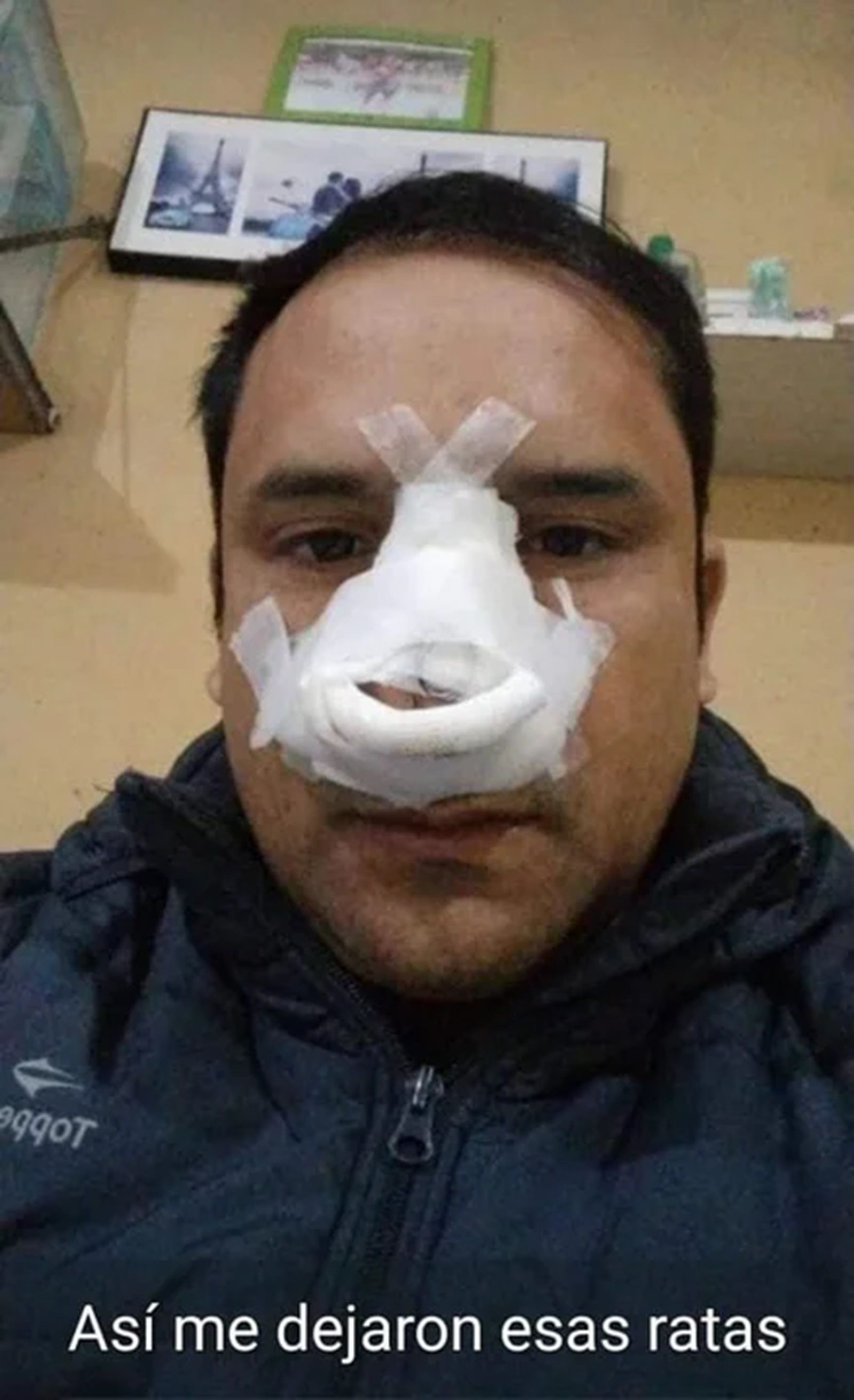 Finalmente, el conductor, aún recuperándose del ataque, compartió su experiencia en una publicación de WhatsApp, mostrando su nariz vendada y expresando su indignación con la frase: “Así me dejaron estas ratas”.