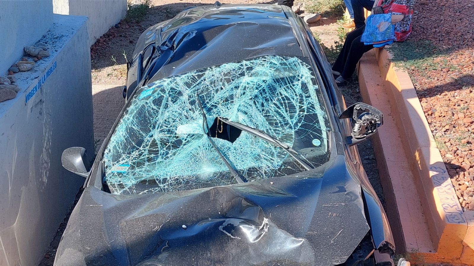 Un fuerte siniestro ocurrió en la mañana de este miércoles, donde una mujer perdió el dominio de su auto, atropelló a un hombre y terminó sobre el triángulo de la virgen ubicado entre calle Maza y la Ruta Provincial 10, en el departamento de Maipú.