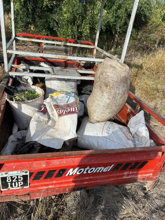 En otro operativo en San Rafael, la misma Policía rural observó a dos hombres que salían de una finca con bolsas cargadas de aceitunas. Fueron interrogados y se determinó que habían ingresado a robar. Los hombres, de 24 y 40 años, quedaron a disposición de la Justicia. Los productos fueron sustraídos.