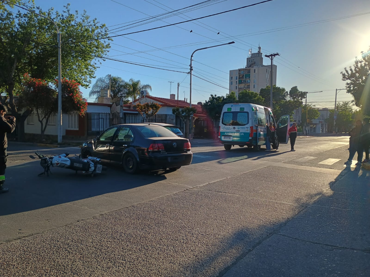 La motocicleta, marca Yamaha, se dirigía por Adolfo Calle, dirección hacia el Este, cuando fue impactada en la mañana de este martes, por un Volskwagen Bora que circulaba por Guido Spano, de sur a norte. Testigos señalaron que el conductor del automóvil fue quien no respetó el paso y causó el accidente.