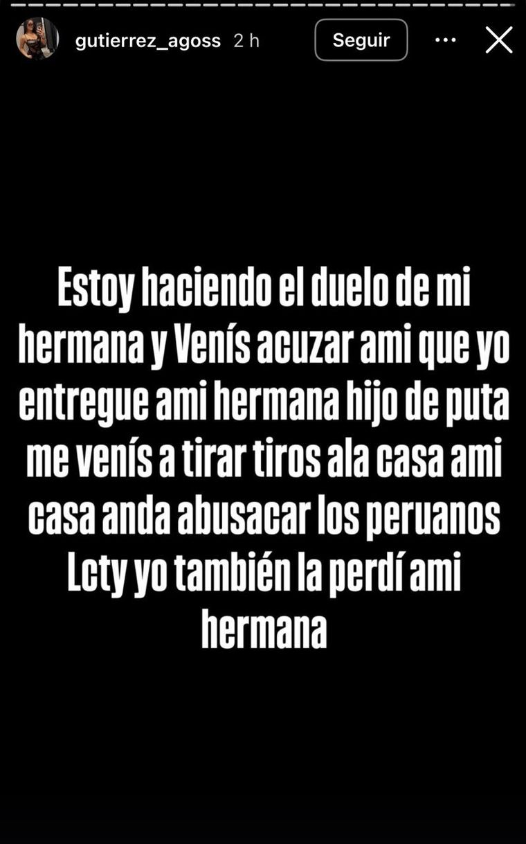 Ese mismo día, una moto pasó frente a la casa de la hermana de Lara, la menor de las tres víctimas, y al grito de "Agostina", su nombre, balearon la vivienda. Ante esto, la madre pidió protección policial.