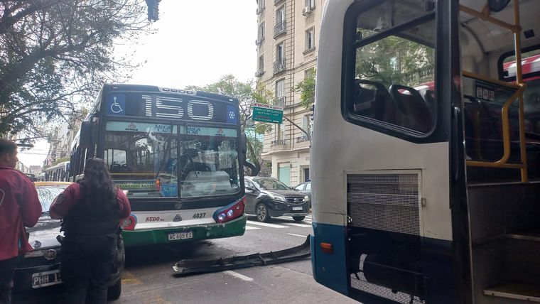 Agustina Castro / MDZEste jueves por la mañana, el caos predominó en la esquina de Santa Fe y Carlos Pellegrini, en pleno barrio porteño de Retiro, debido a un choque entre dos colectivos. Según constató MDZ, un colectivo de la línea 150 impactó con la parte trasera de otra unidad de la línea 108.