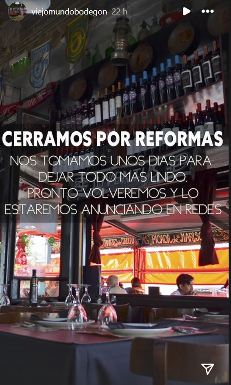 Sin embargo, el bodegón dio otras explicaciones en las redes sociales acerca del cierre. "Nos tomamos unos días para hacer reformas", aseguraron en un posteo en instagram.