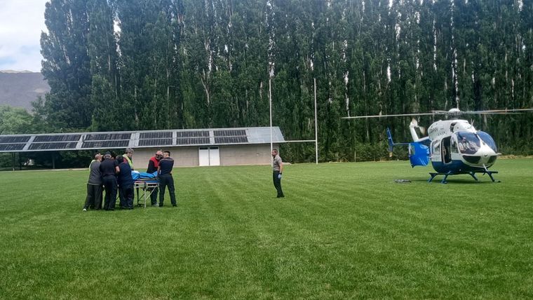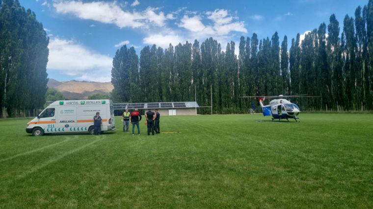 En paralelo, se estableció todo un operativo para trasladar al motociclista herido. En primer lugar, una ambulancia del Servicio de Emergencias Coordinado lo trasladó al Hospital de Uspallata Luis Chrabalowski. Posteriormente, y ante la gravedad del cuadro clínico, solicitaron un traslado vía aérea hacia el Hospital Central.