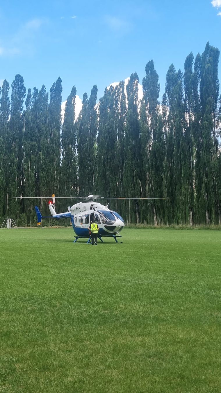 Un helicóptero Halcón 3 de la provincia se despegó hacia Uspallata mientras al lesionado lo trasladaban al hotel Uspallata de la Federación Argentina de Empleados de Comercio para que allí puedan subirlo al helicóptero. Cuando lograron eso, el helicóptero partió hacia el Hospital Central nuevamente.