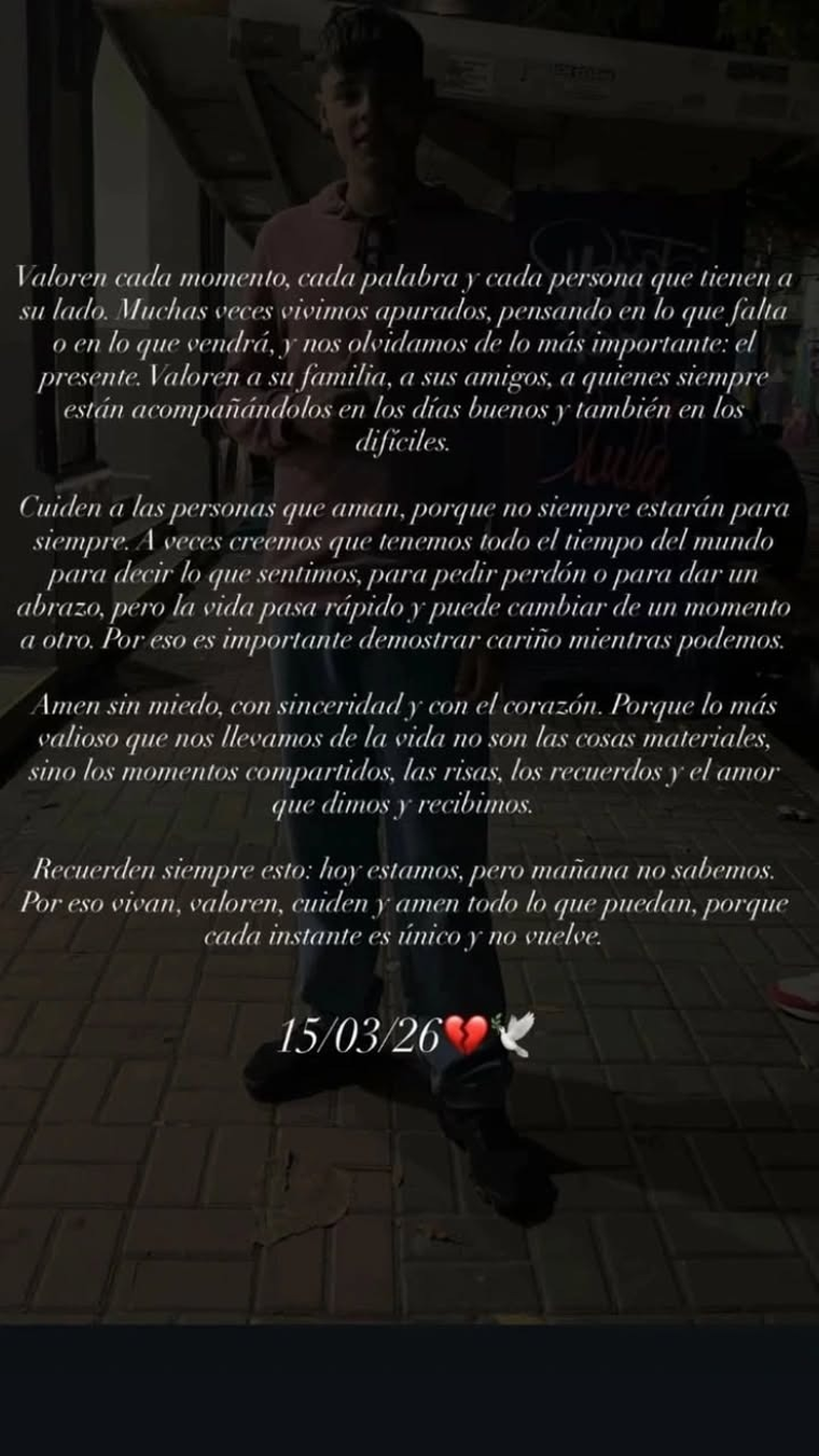 En otro descargo, otra de las allegadas a la víctima escribió: "Hoy estamos, mañana no sabemos". Todo esto como parte de un mensaje mucho más extenso, acompañado de la foto del joven fallecido.