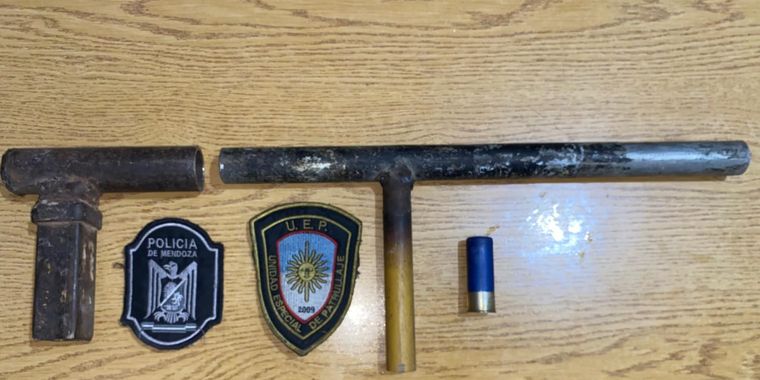 Tras la detención del sujeto se lleva adelante un rastrillaje en la zona por el cual se da el hallazgo de una arma tumbera o de fabricación casera de dos partes.