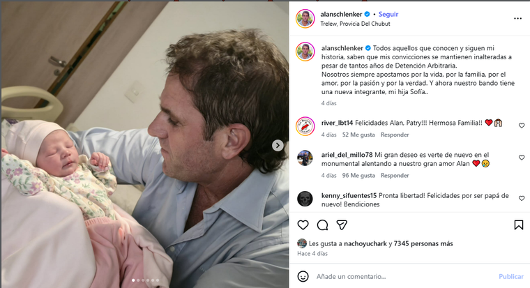 A través de sus redes sociales, Alan Schlenker contó la noticia que fue papá por segunda vez mientras cumple la sentencia por el asesinato de Gonzalo Acro, el cual estuvo ligado a la interna de la barra de River Plate. El 7 de agosto de 2007, cuando la víctima salía de un gimnasio en Villa Urquiza, fue atacada a balazos y recibió dos disparos en la cabeza y uno en la pierna. Dos días después falleció.