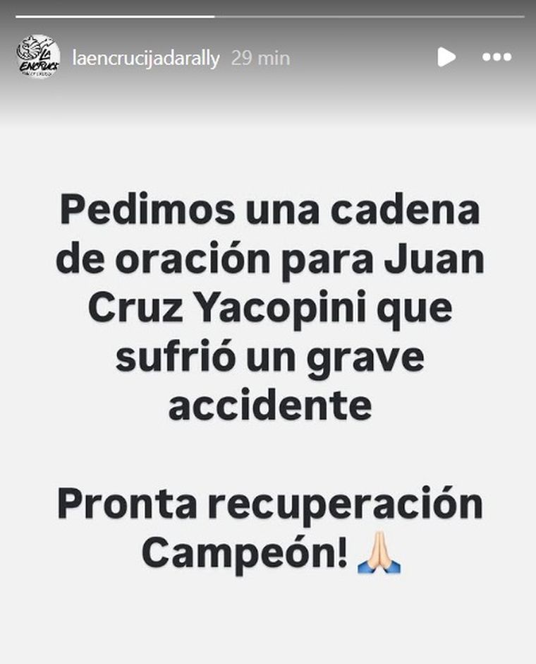 El deportista Juan Cruz Yacopini tuvo un grave accidente y piden por su salud