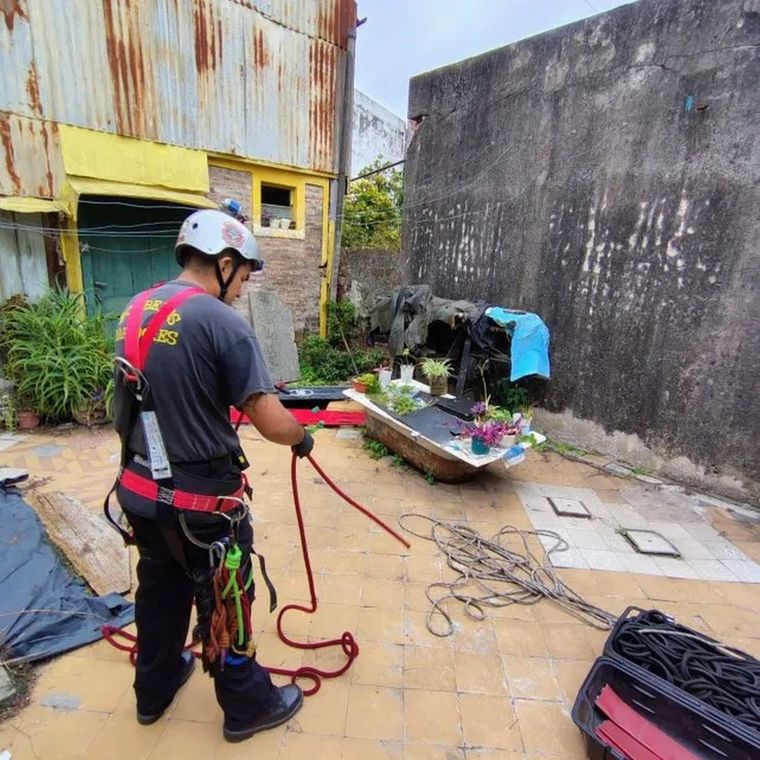 Vecinos dieron aviso al notar que la jubilada tenía la puerta abierta de su casa. Bomberos de Rosario realizaron un rescate con cuerdas para extraerla.