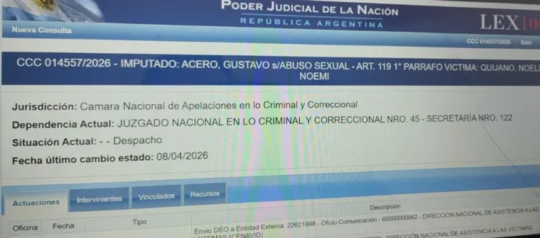 Todo comenzó a partir de una denuncia realizada por una empleada de la institución. El expediente quedó radicado en el Juzgado Nacional en lo Criminal y Correccional Nº 45, Secretaría 122, bajo la carátula “Acero, Gustavo s/abuso sexual – art. 119”, y fue registrado en la Cámara Nacional de Apelaciones en lo Criminal y Correccional, con último movimiento el 8 de abril de 2026.